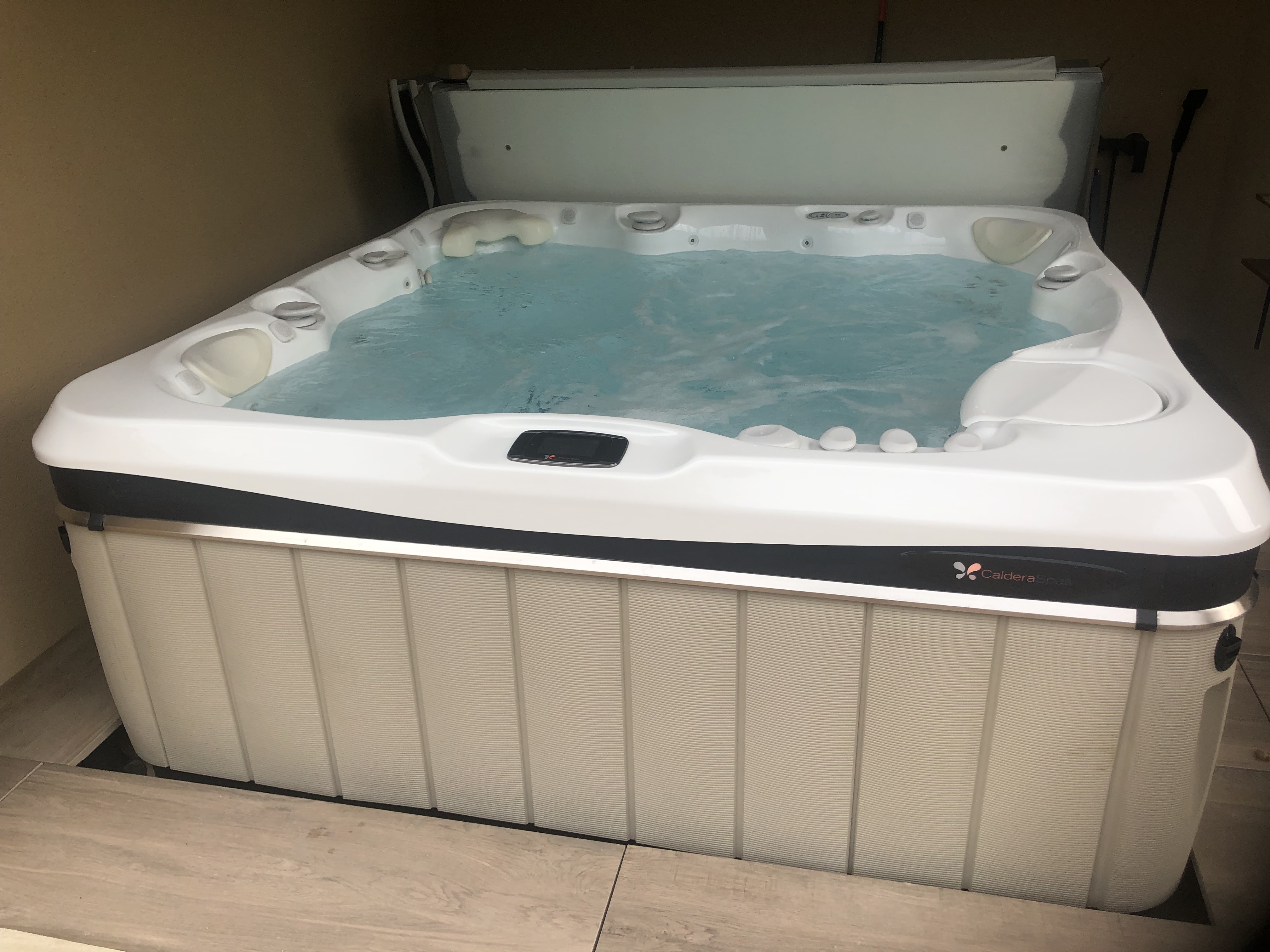 Très beau spa et installation parfaitement effectué. Frédéric nous a donné de très bons conseils. Autour du spa est une très bonne enseigne. Nous avons pris le modèle seychelles et celui-ci nous donne entière satisfaction. Calderas est une bonne marque et le système au sel freshwater fonctionne bien. Nous avons garder l'eau propre depuis presque 1 an en l'utilisant régulièrement. Merci Frédéric...
