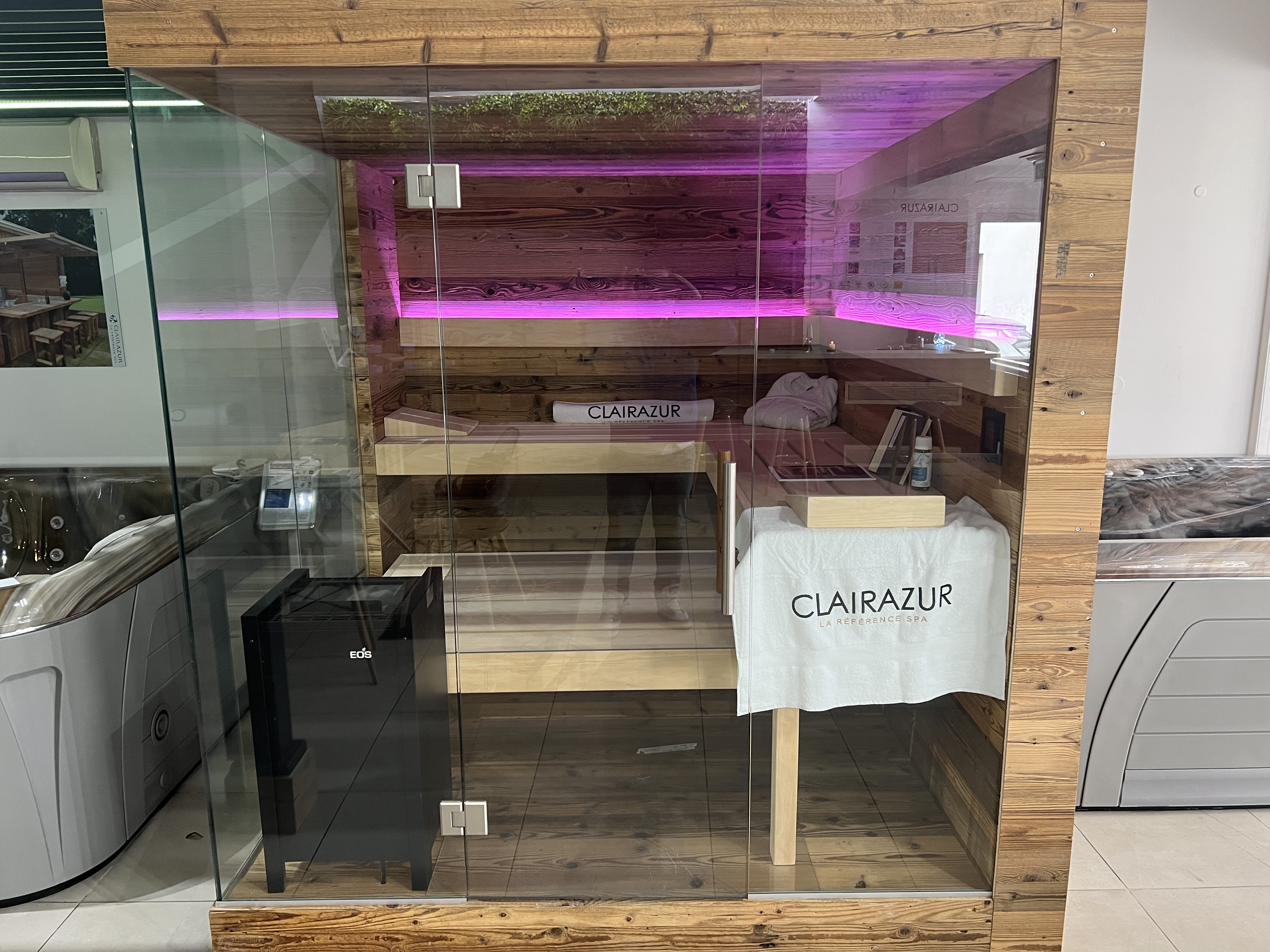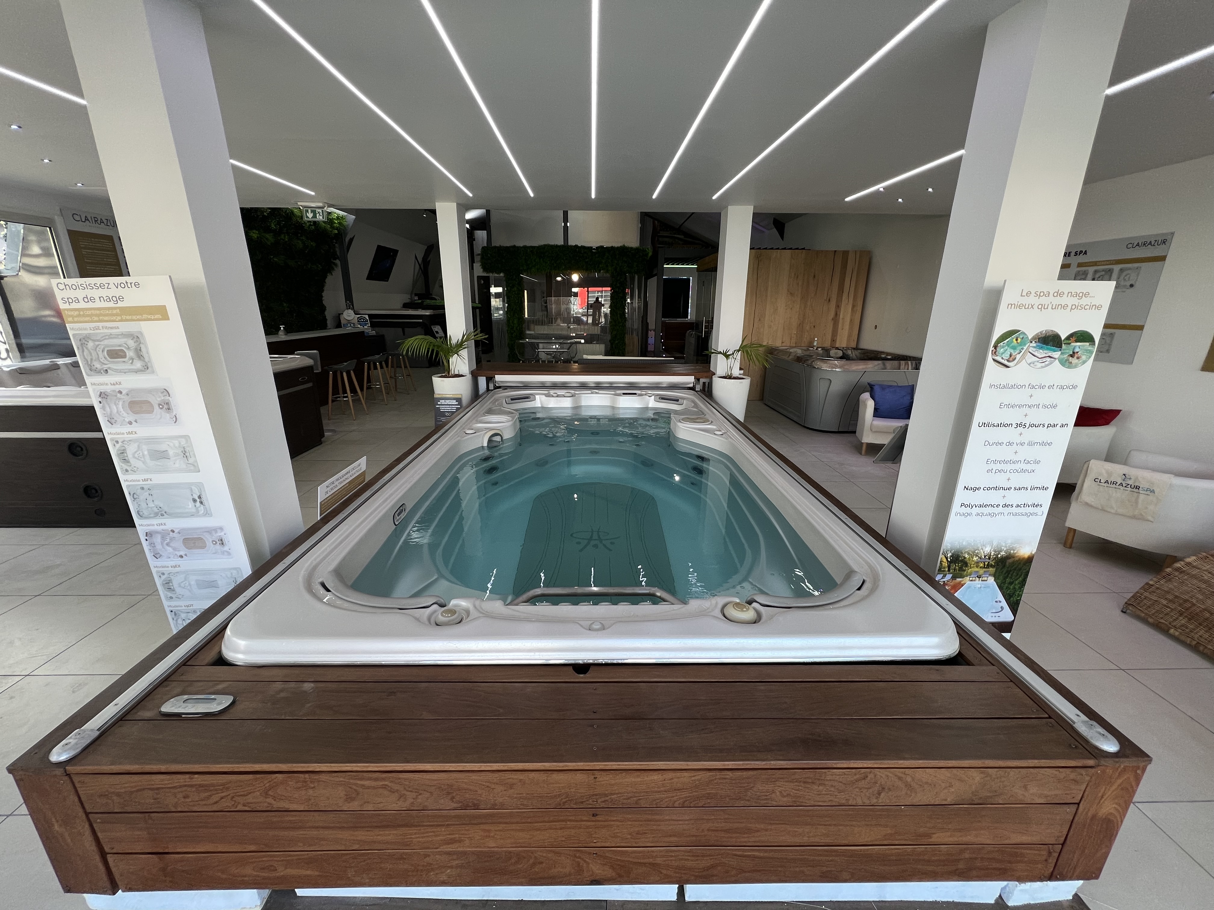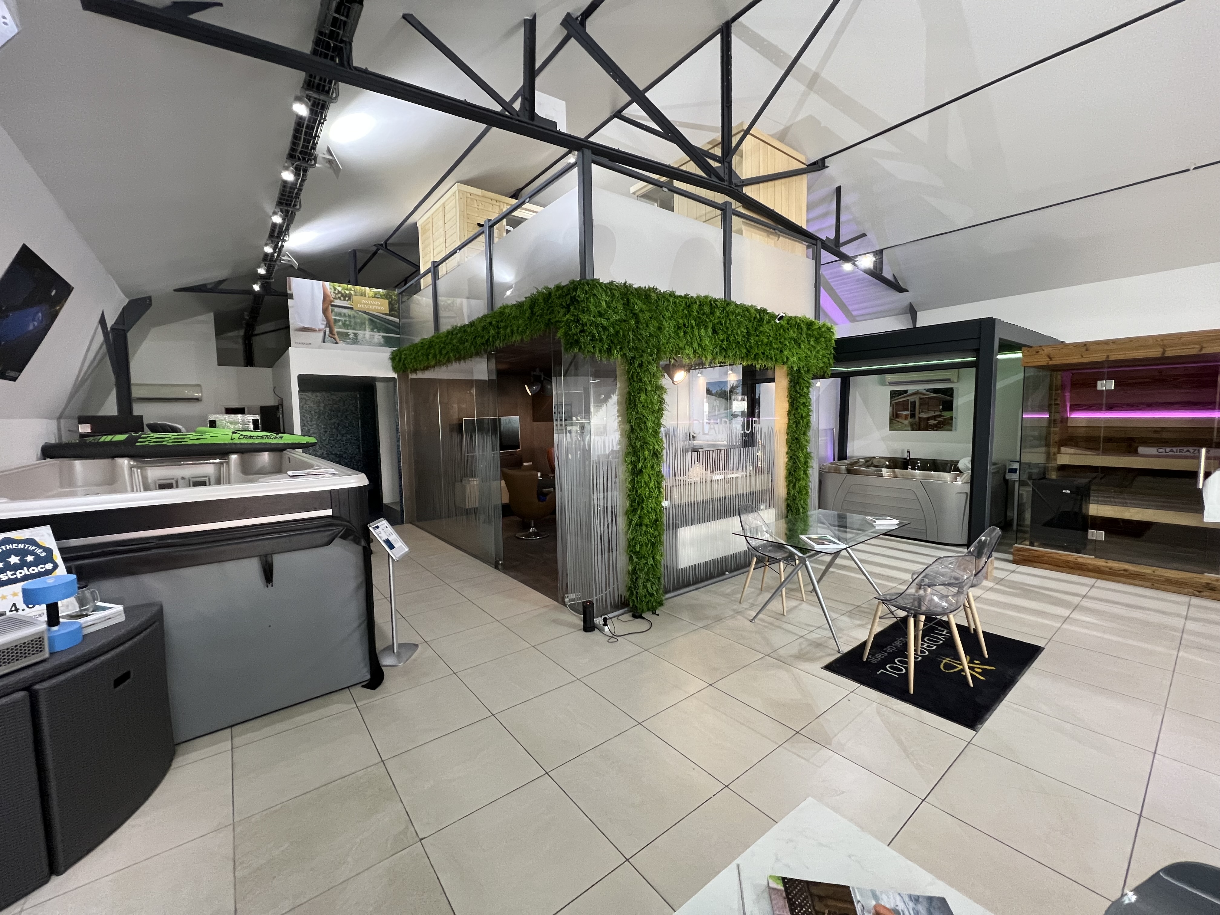 Showroom de 400 mètres, de nombreux SPA, Spa de NAGE, SAUNA, HAMMAM sur mesure. CLAIRAZUR PARIS