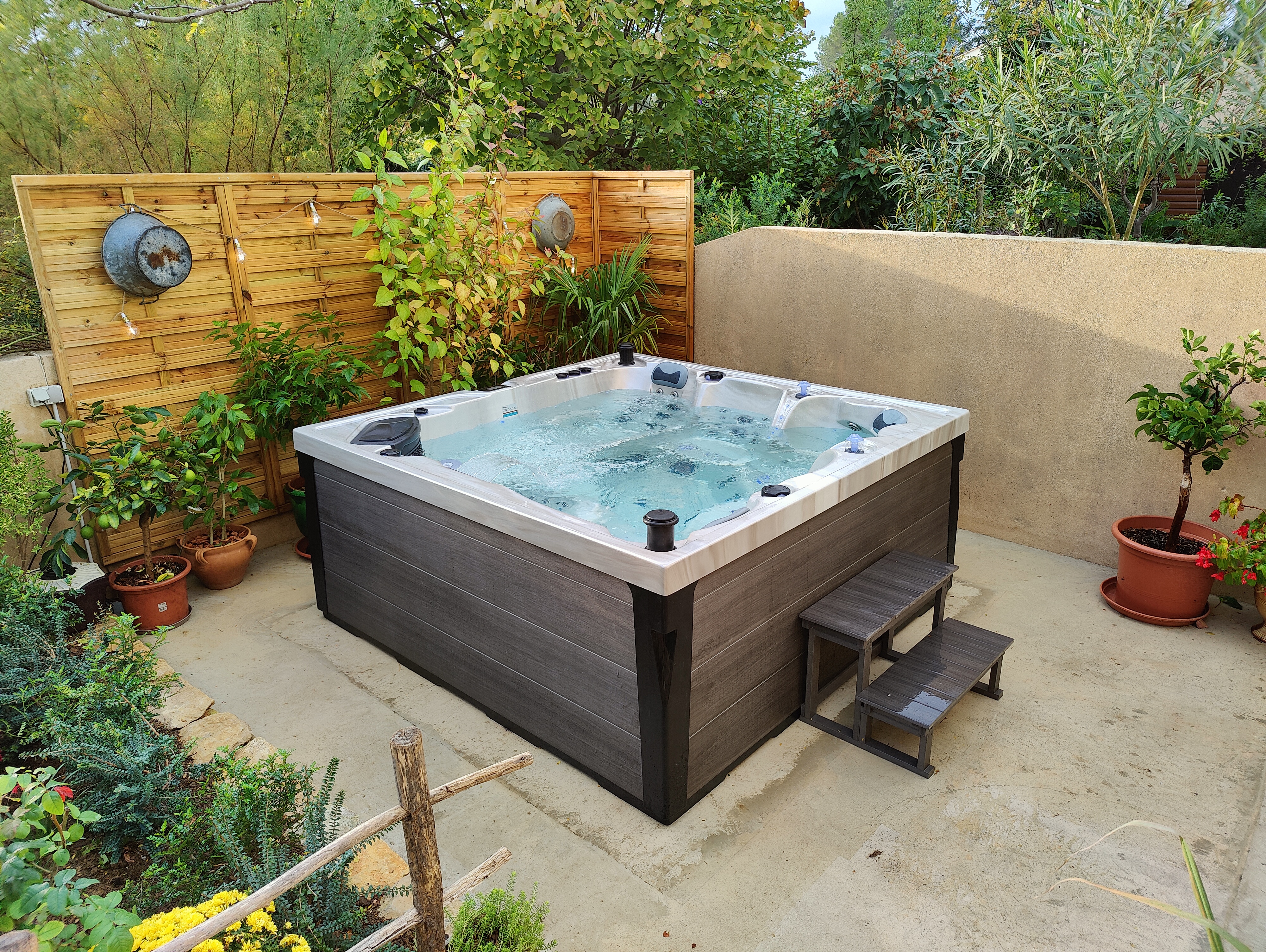 Bonjour Mme De Pellegrini, Merci pour ce 5/5 ainsi que ce partage de photo. Nous vous souhaitons de belles baignades dans votre spa ! L'équipe Mr Spas !