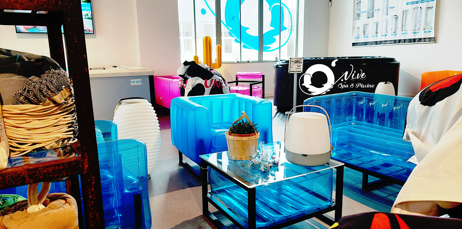 Très joli showroom. Des spas et du mobilier extérieur vraiment original !