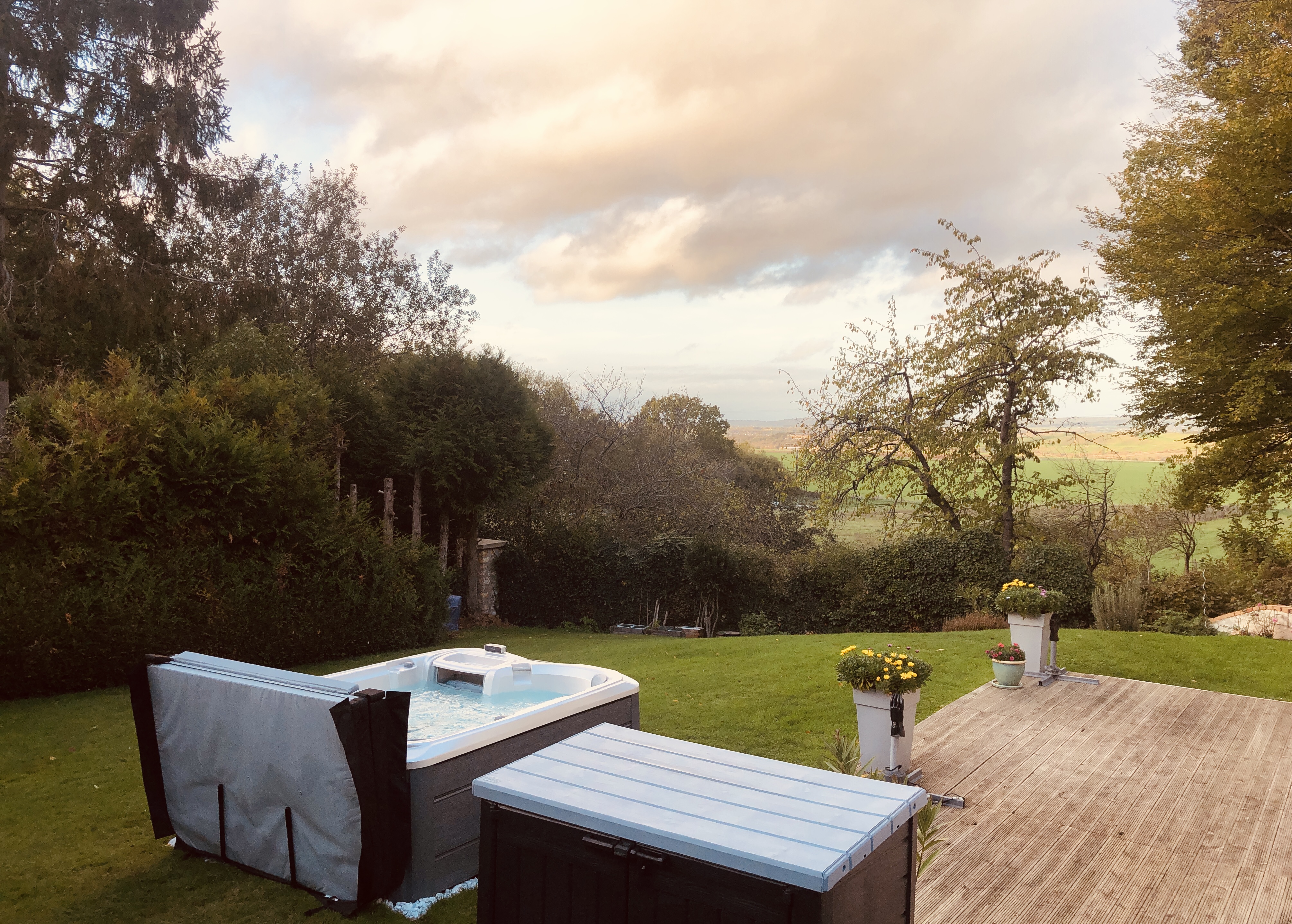 Après avoir été accueilli par Brice fin Aout, nous avons choisi le CAMBRIA de la série 880. Jets Puissants, silencieux, un moment de plaisir incroyable, des massages de qualité pour le dos ou pour libérer les tensions après une sortie en vélo ou un jogging. Installé par Brice en personne, nous profitons de la douceur automnale chaque soir, si vous souhaitez acquérir un Jacuzzi de qualité , allez chez SUNDANCE à Louveciennes. Conseils par SMS ou téléphone à discrétion :)